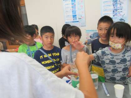 サイエンスクラブ2では、スライムづくりを見せてもらいました。触らせてもらって、大喜びしました。