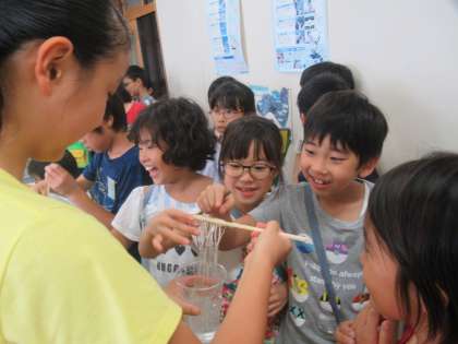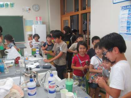 サイエンスクラブ2では、スライムづくりを見せてもらいました。触らせてもらって、大喜びしました。