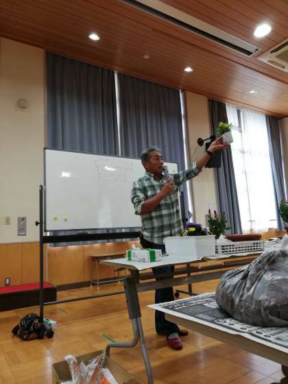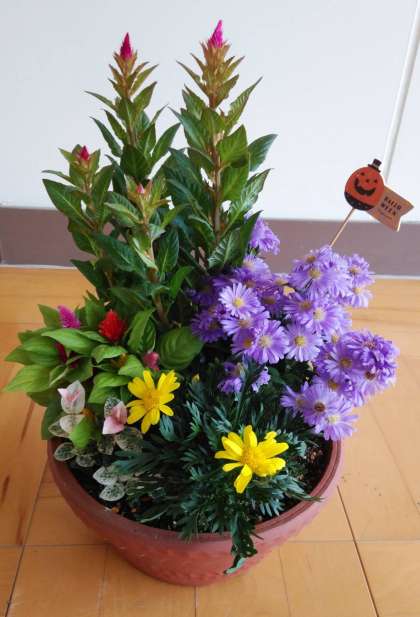 沼津農園の浜島義美様を講師にお迎えし、ハロウィンに飾る花の寄せ植えを教えて頂きました。