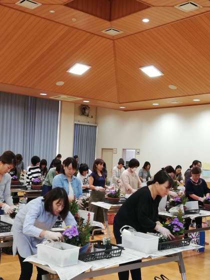 鉢の中に増えていくきれいな花を前に、笑顔がこぼれていました。