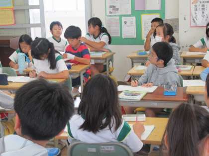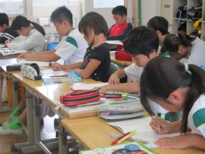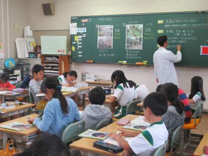 校庭に木の観察をしに行きます。季節ごとの変化を記録しています。