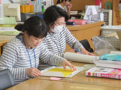 図書館では、ボランティアの方々が蔵書の整備をしてくださっています。子どもたちが本に親しむ環境を充実させるためにご尽力いただき、助かっています。