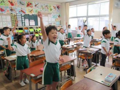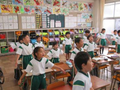 朝の歌は、「勇気100パーセント」。音楽発表会で歌って踊るので、力が入っています。