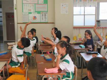 当番さんがスピーチをしました。日記帳を読んで、昨日の出来事を説明しました。