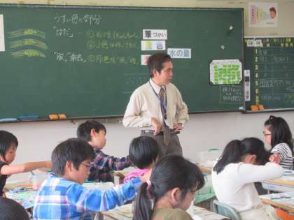 外部講師をお招きして、指導をしていただいています。彩色が進み、すてきな絵になってきました。
