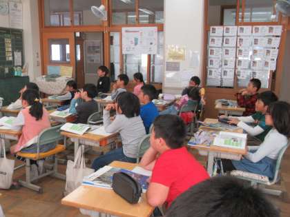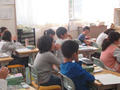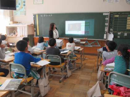 静岡県の農業を学習しています。今日は、お茶栽培の映像を見て、作業の様子を学習しました。