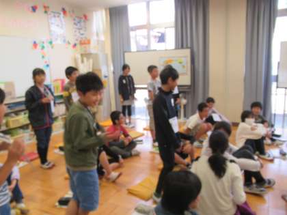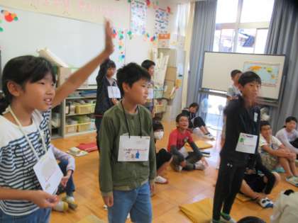 授業のはじめに、ウォーミングアップとして英語のゲームをしています。スリル満点で、自然に英語に親しんでいきます。