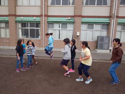朝の校庭では、子どもたちが、運動に励んでいます。
