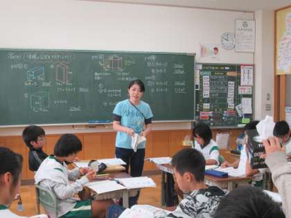 直方体や立方体の体積を求める学習をしています。今日は、身の周りから直方体や立方体を見つけて、体積を計算しました。