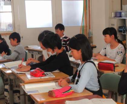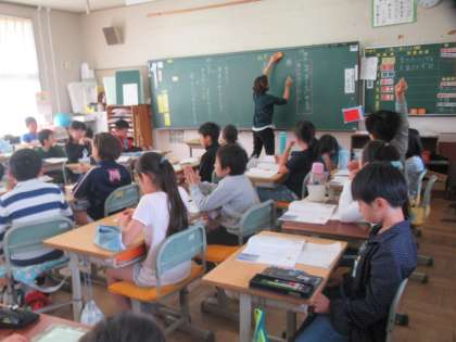 説明文を読んでいます。難しい言葉もみんなで読み解いていきます。