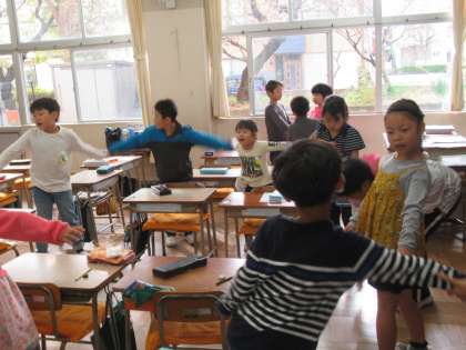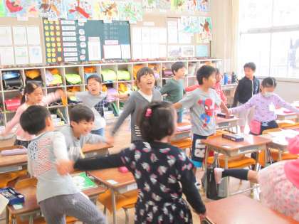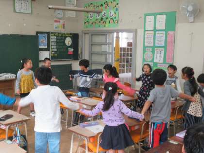 朝の歌を歌いました。今日の音楽発表会で歌う歌の練習になりました。
