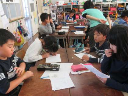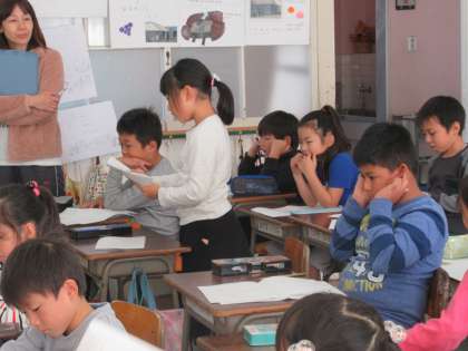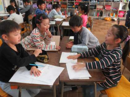 班ごとに好きな詩を選んで、群読の仕方を相談しました。