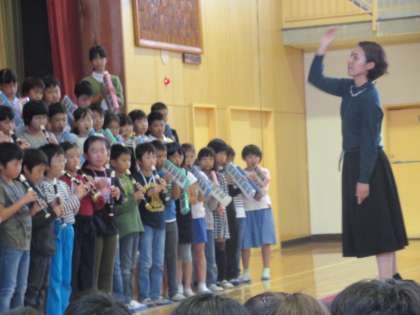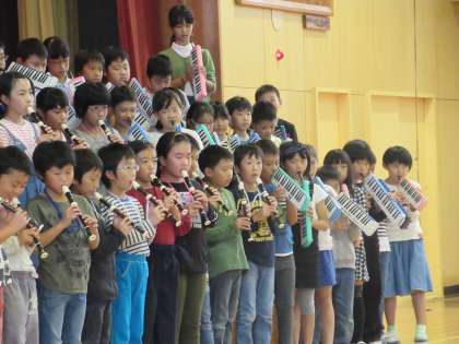 4年生の「茶色のこびん」は、1回目2回目と、だんだんに楽器が増えていきます。その間、ずっとリズムを保ちつつ、演奏に厚みが加わっていきました。