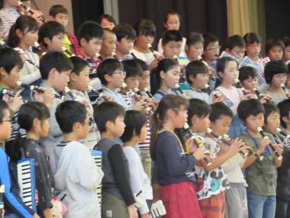 4年生の「茶色のこびん」は、1回目2回目と、だんだんに楽器が増えていきます。その間、ずっとリズムを保ちつつ、演奏に厚みが加わっていきました。