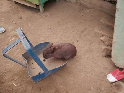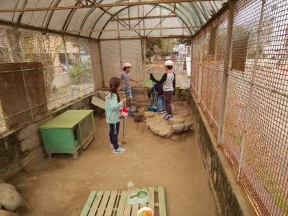 4年生が、ウサギのショコラの世話をしています。毎朝欠かさず、実行しています。
