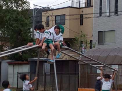 遊具広場で、1,2年生が元気に遊んでいます。遊びながら、体を鍛えます。