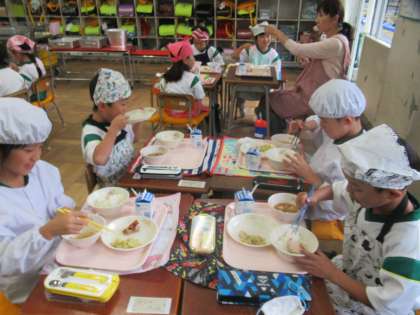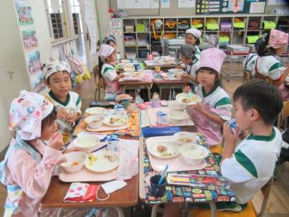 今日の主菜は、鶏肉の塩こうじ焼きです。ふっくら焼けた鶏肉はジューシーで、1年生にも大好評でした。
