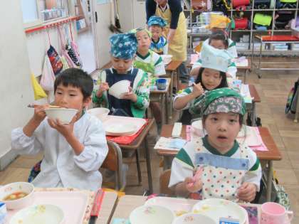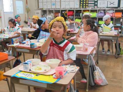 今日の主菜は、鶏肉の塩こうじ焼きです。ふっくら焼けた鶏肉はジューシーで、1年生にも大好評でした。