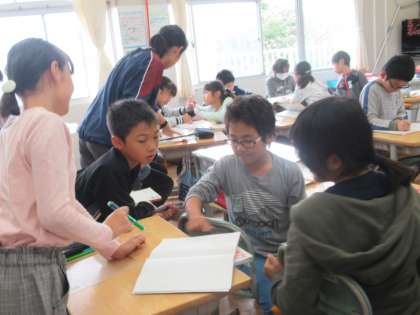 複合的な立体の体積を求めます。どんな考え方があるのか、どこでつまずいているのかなど、友達と交流をしました。