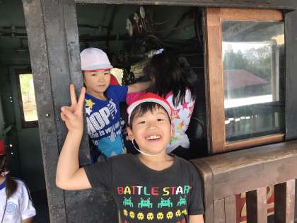大きなSLに目を光らせています。気分は運転手さん!