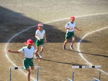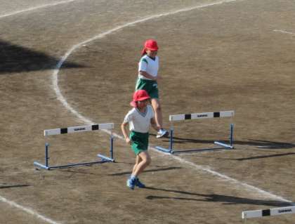 ハードル走に挑戦しています。だいぶリズムよく跳べるようになってきました。