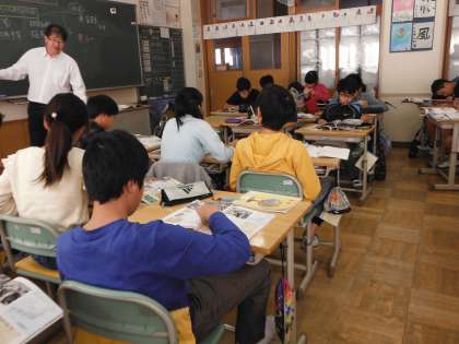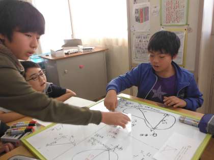 1組は走り幅跳び、2組は算数、3組は社会の学習です。みんな集中して取り組んでいます。さすが6年生ですね。