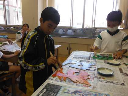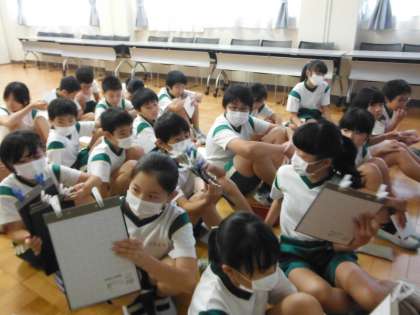 5年生は、身体測定、図工、家庭科の学習です。5年生も、集中して取り組んでいます。