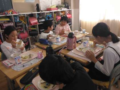 4年生は社会科見学から帰ってきました。とてもしっかりした態度で、講師の今井先生も褒めていました。給食もしっかり準備をして、静かに食べることができます。成長しています。