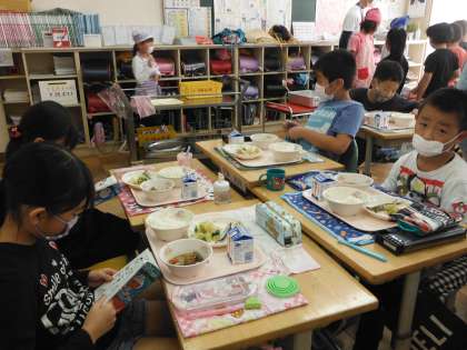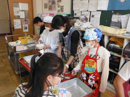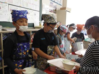3年生も素早く準備ができます。たくさん食べて大きくなってね。