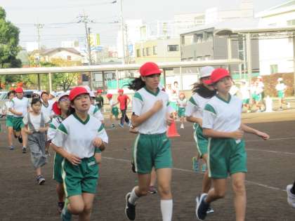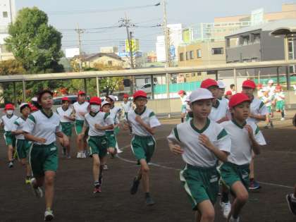 1,2年生は4分間走、3,4年生は5分間走、5,6年生は6分間走に挑戦しています。