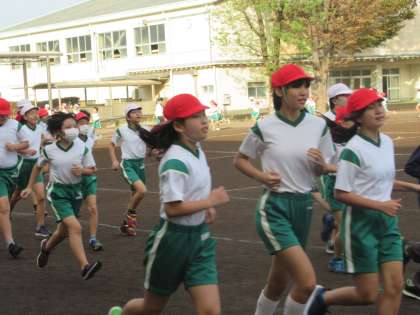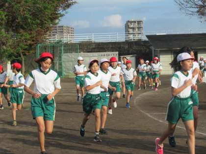 1,2年生は4分間走、3,4年生は5分間走、5,6年生は6分間走に挑戦しています。