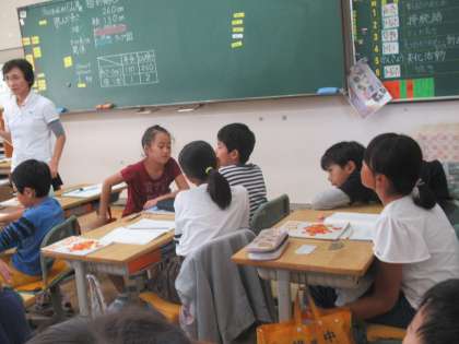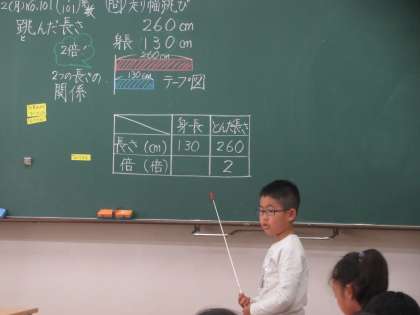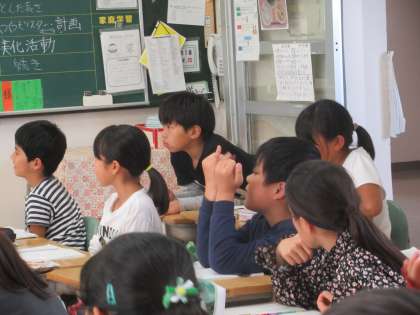 友だちの説明を聴いて、熱心に話し合いました。かかわりあって学ぶ4年生です。