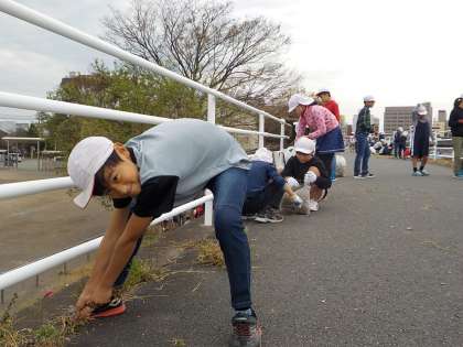 5時間目は全学年一斉に環境美化活動を行いました。6年生は、堤防沿いの道をきれいにしました。