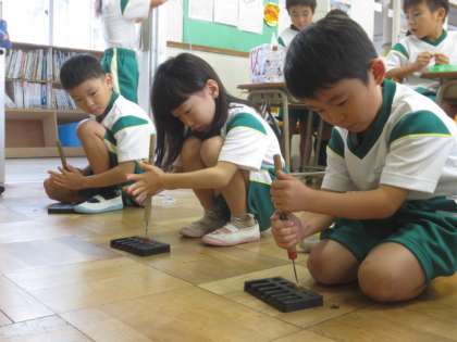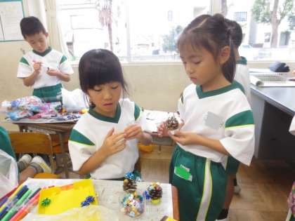 どんぐりごま、やじろべえ、けん玉、クリスマス飾りなど、いろいろな物ができました。