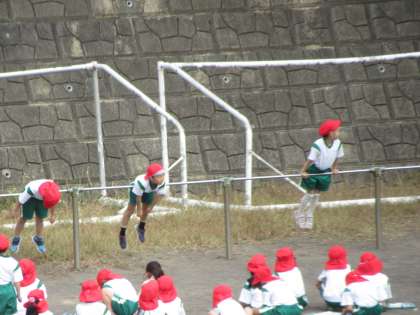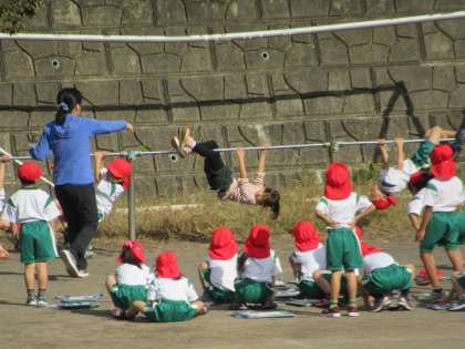 鉄棒の学習です。「ふとん干し」に挑戦しました。