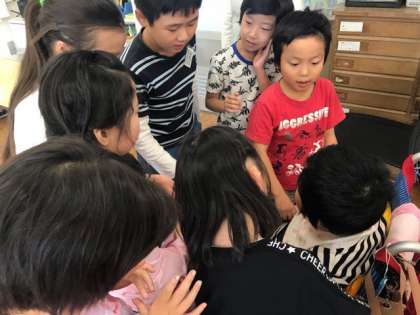 交流会では、来てくれたお友達を囲んでたくさん遊びました。みんなで歌を歌ったり、紙コップロケットを作ったりしました。