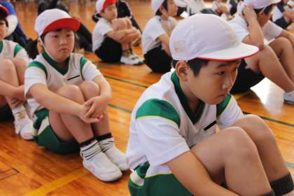 合同運動会、開会式です。緊張と期待で、引き締まった顔つきをしています。