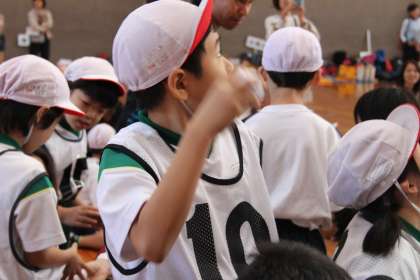 親子競技は、玉入れです。お家の方が拾ってくれた玉を、一生懸命投げています。