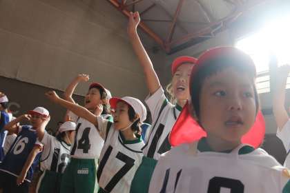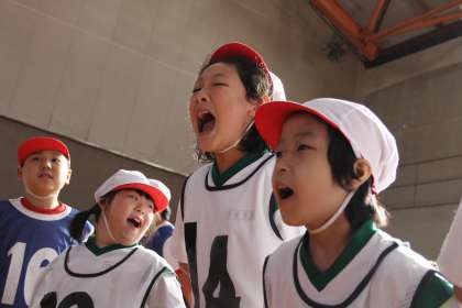 応援合戦です。白組応援歌を全力で歌い、白組の勝利を祈ります。