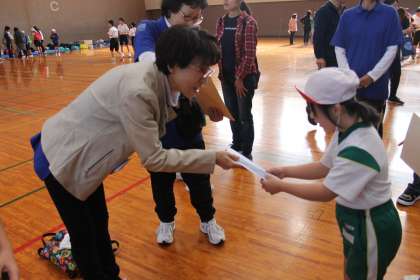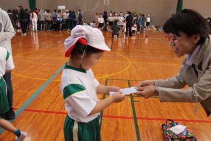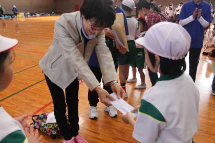 校長先生から参加賞をいただきました。みんな、満足そうな顔をしています。