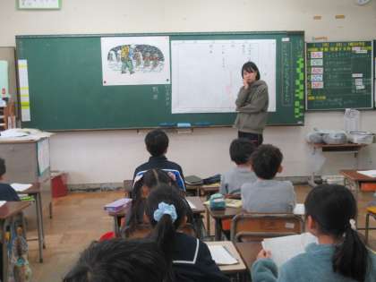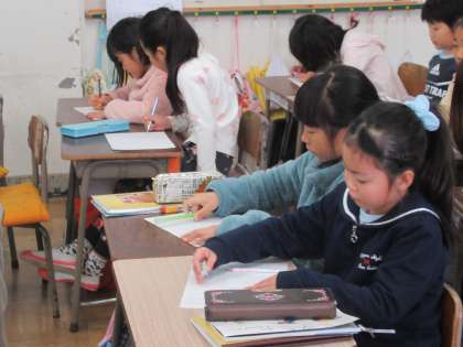 「かさこじぞう」を読んでいます。今日は、じぞうさまにかさこをかぶせたときのじさまの気持ちを読み取りました。一人一人が読み取ったことを、ワークシートに書き込んでいきます。