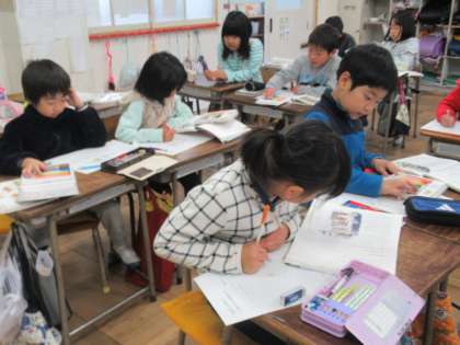 「かさこじぞう」の学習の終わりに、お手紙を書きました。じさまになってじぞうさまへ、じぞうさまからばさまへ…。なりたい登場人物を決めて、読み取ったことを生かして書いています。