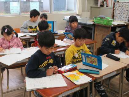 音をさがしてお話づくりの学習です。カタカナを使って、音の表現をしています。