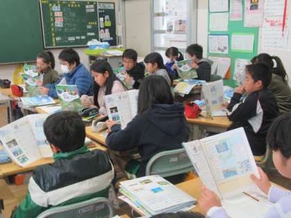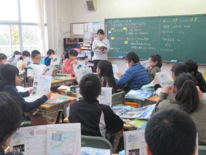 教科書を読んで、学習した内容を確認しています。姿勢よく教科書をしっかり持って読んでいるのも、大切な学習規律です。