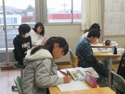 長く続いた戦争について、個々が調べ学習をしています。教科書だけでなく、資料集も活用します。