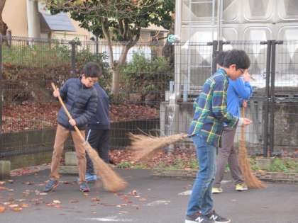 計画委員さんたちが、落ち葉掃きをしてくれています。四小のみんなのために役に立とうとする気持ちが、すてきです。