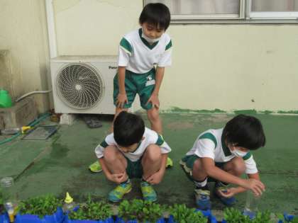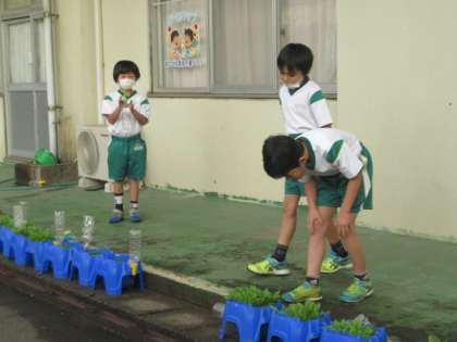 2年生は、冬野菜の世話をしています。本葉が出てきたので、葉の形で何を育てているのか分かるようになってきました。