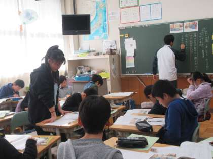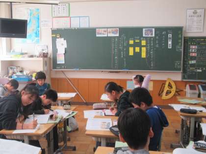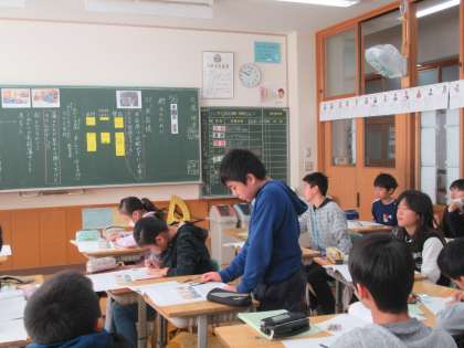 資料を読んで、みんなで考えを交流しています。多様な考え方にふれることができます。