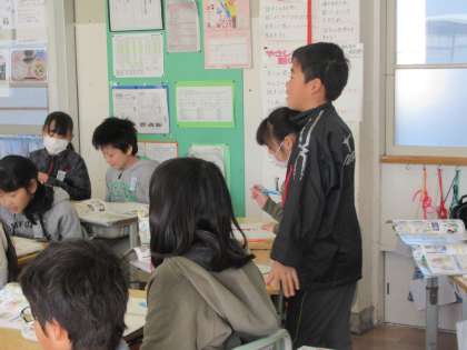 情報化した社会と自分たちのくらしについて学習しています。今日は、情報ネットワークについて、話し合っていました。