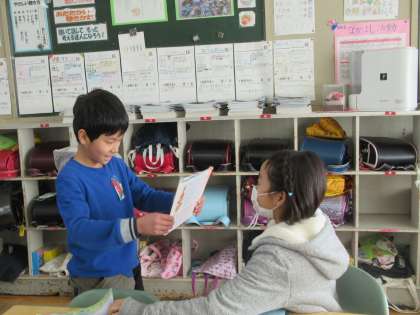 もうすぐ休み時間というタイミングだったので、予定帳を書く時間でした。書き終えると、隣の友だちに確認をしてもらっています。